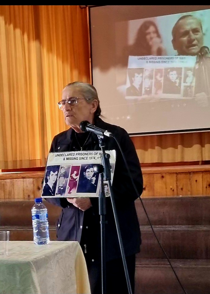 Ιδιαίτερα συγκινητική ήταν η παρουσία της κυρίας Χαρίτας Μάντολες, μιας γυναίκας–συμβόλου της κυπριακής τραγωδίας, η οποία μοιράστηκε τη δική της συγκλονιστική ιστορία ως συγγενής αγνοουμένου της τουρκικής εισβολής του 1974, αγγίζοντας βαθιά τις καρδιές όλων με τη δύναμη ψυχής και τον λόγο της.
