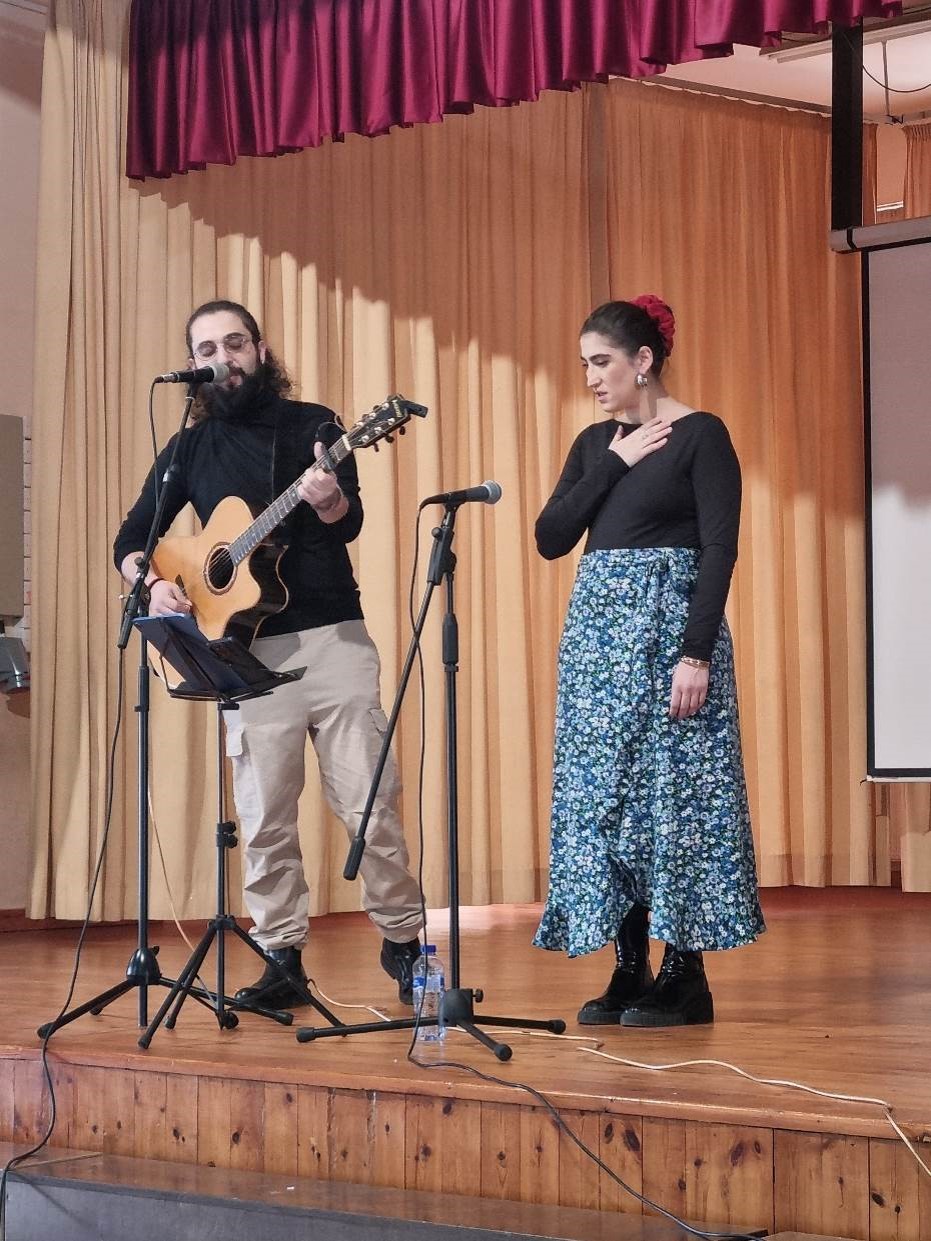 Παράλληλα, μέσα από τις φωνές και τη μουσική των Σάββας Χρυσοστόμου και Κατερίνας Παράσχου, τόσο το εκπαιδευτικό προσωπικό όσο και τα παιδιά βίωσαν έντονες στιγμές συγκίνησης, καθώς τα τραγούδια τους μετέδωσαν μηνύματα ελπίδας, μνήμης και ευθύνης. Η συμβολή όλων υπήρξε πολύτιμη, υπενθυμίζοντάς μας τη σημασία να διατηρούμε ζωντανή την ιστορική μνήμη και να συνεχίζουμε με δύναμη να λέμε «Δεν Ξεχνώ».