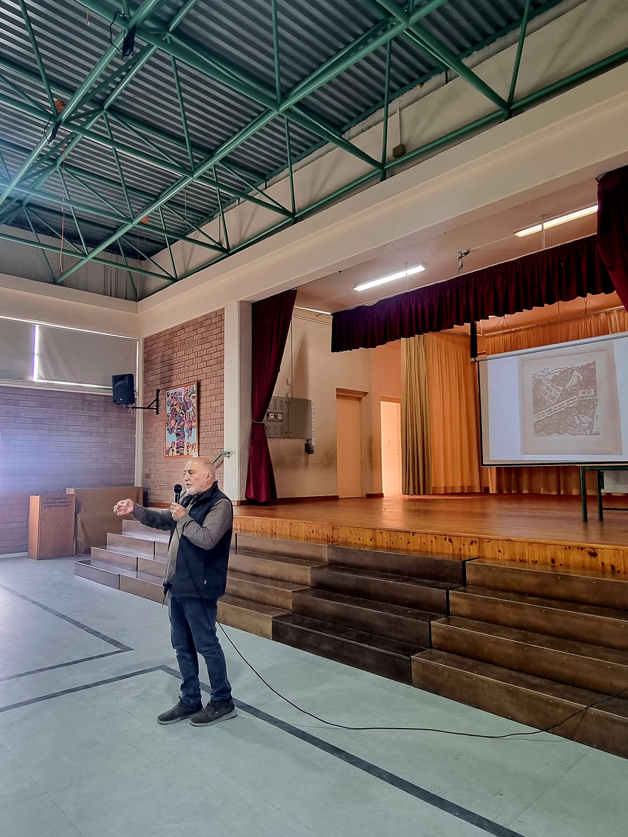 Στο πλαίσιο του Δεκαπενθημέρου «Γνωρίζω, Δεν Ξεχνώ, Διεκδικώ», οι μαθητές και οι μαθήτριες είχαν την ευκαιρία να συμμετάσχουν σε δημιουργικές δραστηριότητες και κατασκευές, προσεγγίζοντας με βιωματικό τρόπο την ιστορία του τόπου μας. Ξεχωριστή ήταν η συνάντησή τους με τον κύριο Χαμπή Χαράκτη, ο οποίος μίλησε με ειλικρίνεια και συναίσθημα για το έργο του και για την εμπειρία της εισβολής, όπως τη μεταφέρει και τη μεταμορφώνει μέσα από την τέχνη του.